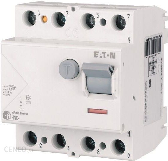 Wyłącznik różnicowoprądowy 40A 4P 6kA typ AC HNC-40/4/003 xPole Home 194694 EATONxPole Home EATONSeria xPole Home firmy EATON to nowoczesna aparatura modułowa składająca się z wyłączników naprądowych HN, wyłączników różnicowoprądowych HNC, oraz wyłączników kombinowanych HNB . xPole Home to produkty zaprojektowane z myślą o gospodarstwach domowych. Cechuje je wysoka niezawodność, nowoczesny design oraz solidne wykonanie. Aparatura modułowa firmy EATON zapewnia bezpieczeństwo oraz optymalną pracę instalacji elektrycznej. Szeroki asortyment akcesoriów dodatkowych xPole Home zapewnia możliwość rozbudowy systemu o dodatkowe styki pomocnicze czy szyny łączeniowe.Zalety produktów xPole Home:- podwójne zaciski przyłączeniowe windowe i szynowe,- zasilanie aparatów z góry lub z dołu,- wysoka jakość materiałów wykorzystana do produkcji,- solidne wykonanie,- łatwość montażu,- klips mocujący do szybkiego montażu na szynie TH35,- możliwość użycia szyn EVG lub Z-GV,- bezpieczeństwo oraz niezawodność,- łatwy wybór produktów oraz ich późniejsza rozbudowa,- nowoczesny wygląd.Seria HNC EATON- wyłączniki różnicowoprądoweSeria HNC EATON zapewnia bezpieczeństwo oraz zoptymalizowaną pracę instalacji elektrycznej. Produkty EATON są niezawodne i zgodne z normami, to doskonały wybór dla profesjonalnych instalatorów i nie tylko. Urządzenia HNC zachwycają swoją wszechstronnością i możliwościami użycia, znajdą one zastosowanie w budownictwie mieszkaniowym. Wyłączniki różnicowoprądowe HNC są bezpośrednim zastępcą serii CFI6.Parametry techniczne serii Xpole HOME HNC:znamionowa zdolność wyłączania: 6kAprąd znamionowy: 25, 40, 63 Aznamionowy prąd wyzwalający: 30, 300, 100, 500 mAbiegu ny: 2, 4czułość : A, AC, G, G/A, S, S/AMontaż na szynie DIN TH 35podwójne zaciski windowe/ szynowe (po zamontowaniu szyny łączeniowej wolny zacisk windowy)możliwość montażu szyny z obu stron: góra/ dółwyzwalanie jest niezależne od napięcia siecimożliwość zasilania z obu stron (góra/ dół)zdolność do użytku ze świetlówkami (ze statecznikiem/ bez statecznika)zabezpieczenie przed prądami doziemnymi, prądami różnicowymiwbudowany wskaźnik położenia styków (kolory zielony oraz czerwony)*Seria PF6 – wyłączniki różnicowoprądoweAlternatywą dla bardziej wymagających użytkowników jest seria PF6. Wyłączniki tej serii znajdą zastosowanie w budownictwie wielorodzinnym/ zbiorczym. Różnicówki PF6 stosuje się w dużych inwestycjach oraz przemyśle.Parametry techniczne: 6 kA/ bieguny; 2, 4/ prąd znamionowy; 25-63 A/ prąd różnicowy; 30, 300, 100, 500 mA/ typy czułości; A, AC, G, G/A, S/A, S.Co to jest wyłącznik różnicowoprądowy ?Wyłącznik różnicowoprądowy to potocznie różnicówka , elektryczne urządzenie zabezpieczające r ozłącza ono obwód po wykryciu różnicy natężenia między prądem wpływającym i wypływającym. Głównym zadaniem różnicówki jest ochrona ludzi przed porażeniem.Parametry techniczne 40A 4P 6kA typ AC HNC-40/4/003 xPole Home 194694 EATON:prąd znamionowy: 40Abieguny: 4typ: ACznamionowa zdolność wyłączania: 6kAprąd różnicowy: 30mAProducent aparatury modułowej EATONFirma EATON ELECTRIC to światowy lider na rynku zabezpieczeń zarządzania energią elektryczną. Od roku 1911 tworzy produkty najwyższej jakości, które pomagają ludziom w codziennym życiu. Wysokiej jakości aparatura modułowa i rozdzielnice EATON cieszą się dużą popularnością zarówno wśród Instalatorów jak i Klientów finalnych. Sprawdź więcej towarów EATON tutaj .