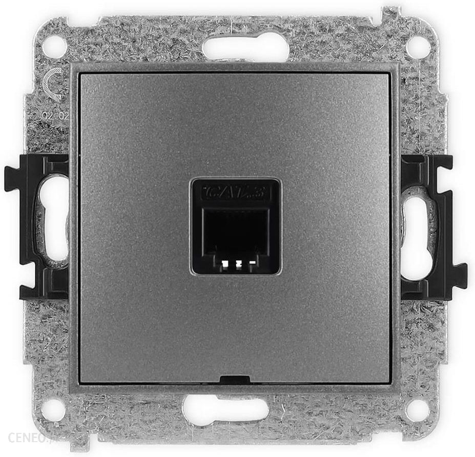 Gniazdo telefoniczne pojedyncze w kolorze grafitowym z serii MINI, marki Karlik.Gniazdo telefoniczne pojedyncze służy do podłączenia przewodu telefonicznego. Do kompletu wymagana ramka. Można stosować do systemów ramkowych wielokrotnych.