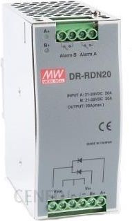 Moduł DR-RDN-20 skierowany jest do redundantnych systemów zasilania 24V o maksymalnym prądzie 20A i współpracy z dwoma zasilaczami. W razie awarii zasilacza głównego, złącza przekaźnikowe bezzwłocznie przełączają się na zasilacz zapasowy, a diody LED informują o awarii niesprawnego zasilacza. Wiedząc który zasilacz jest uszkodzony, możemy go podmienić i mieć pewność, że ciągłość pracy nadal będzie zachowana.