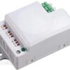 MIKROFALOWY CZUJNIK RUCHU 500WORNO OR-CR-229NAJWAŻNIEJSZE CECHYwbudowany czujnik zmierzchowy i przekaźnik czasowyprzeznaczony do zabudowy w oprawach oświetleniowychdetekcja ruchu przez szkło, tworzywa sztuczne, płyty kartonowo-gipsowebrak wpływu temperatury na detekcjępłaska obudowa umożliwia montaż w puszce podtynkowejwspółpracuje z oświetleniem LED-owymrodzaj materiału: tworzywo sztuczneregulacja zworkowa: zasięgu, czasu świecenia, natężenia światłaCERTYFIKATOPIS PRODUKTUMikrofalowy (radarowy) czujnik ruchu jest aktywnym detektorem ruchu – zintegrowany element pomiarowy wysyła elektromagnetyczne fale wysokiej częstotliwości i odbiera ich echo. Czujnik wykrywa zmiany w echu wywołane nawet najmniejszym poruszeniem w obserwowanym obszarze.SPECYFIKACJA TECHNICZNAzasilanie: ~230V/50Hzmax. obciążenie: 500Wstopień ochrony: IP20kąt widzenia: 180°/360°czas świecenia: 5 sek., 30min., 90 sek., 3 min. 5 min., 10 min.zasięg: 2m, 5m, 8mnatężenie światła: 5 lux, 30 lux, 150 lux, 2000luxwys. montażu: 1,5 – 3,5 mczęstotliwość: 5,8 GHzemisja mocy: <10mWtemp. pracy: -20°C~+40°Cwymiary (szer./wys./gł.): 58×25,5×40,5 mmW SKŁAD ZESTAWU WCHODZIMIKROFALOWY CZUJNIK RUCHU (nr kat. 9260)GwarancjaParagon fiskalny lub faktura VAT