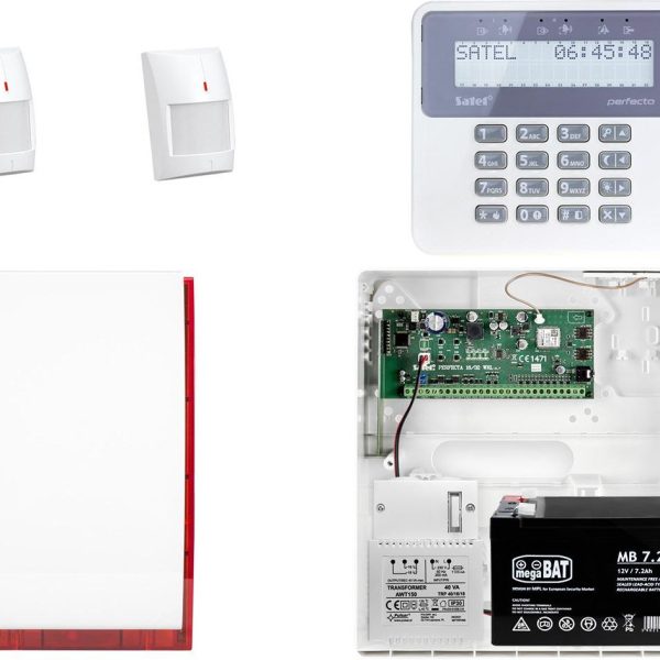 Bezprzewodowy System alarmowy SATEL: Płyta Główna Perfecta 16-WRL + Manipulator PRF-LCD-WRL+ 2x Czujka MPD-300 , Sygnalizator Bezprzewodowy MSP-300 + AkcesoriaPłyta Główna Perfecta 16-WRLwejścia programowalne przewodowe: 8 (maks. 16)wybór konfiguracji (NO, NC, EOL, 2EOL/NO, 2EOL/NC)możliwość obsługi czujek roletowych i wibracyjnychwyjścia programowalne przewodowe: 4 (maks. 12)dodatkowe 4 wyjścia bezprzewodowe (dla MSP-300)zintegrowany moduł radiowy (częstotliwość 433MHz)ilość stref: 2 (po 3 tryby dozoru)pamięć zdarzeń: 3854timery: 8 (możliwość ustawienia wyjątków)zintegrowane moduły:GSM/GPRS z 2 gniazdami SIM (SMS, monitoring stacji, powiadomienia PUSH)głosowy (odtwarzanie komunikatów głosowych)akustycznej weryfikacji alarmu (nasłuchiwanie dźwięków)automatyczna diagnostyka podstawowych komponentówmagistrala komunikacyjna dla manipulatorów (PRF-LCD) i modułów rozszerzeń15 haseł użytkowników (1 hasło serwisowe)sterowanie systemem:manipulatory PRF-LCD / PRF-LCD-WRL (maks. 4)aplikacja mobilna PERFECTA CONTROLpiloty zdalnego sterowania MPT-350 (maks. 15)możliwość aktualizacji oprogramowania (firmware)wbudowany zasilacz impulsowyzabezpieczenia: przeciwprzeciążeniowe, całkowite rozładowanie akumulatora2 wyjścia zasilające na płycie głównejzgodność z EN 50131 Grade 2wymiary: 160x110mmgwarancja: 24 miesiąceManipulator PRF-LCD-WRLwspółpraca z centralami PERFECTA 16-WRL, PERFECTA 32-WRLdwukierunkowa kodowana komunikacja radiowa w paśmie częstotliwości 433 MHzduży, czytelny wyświetlacz LCDdiody LED informujące o stanie stref i systemuszybkie włączanie wybranego trybu czuwania przy pomocy klawiszy funkcyjnychalarmy NAPAD, POŻAR, POMOC wywoływane z klawiaturypodświetlenie wyświetlacza i klawiszysygnalizacja dźwiękowa wybranych zdarzeń w systemiesygnalizacja utraty łączności z centralązasilanie: dwie baterie litowe 3 V CR123A2x Czujka MPD-300cyfrowy algorytm detekcji z kompensacją temperatury, zapewniający wysoką odporność na fałszywe alarmy i powtarzalność parametrów,możliwość zmiany czułości pozwalająca dopasować optymalne parametry czujki do chronionego pomieszczenia,opcjonalny tryb pracy z odpornością na ruch małych zwierząt do 15kg, pozwalający chronić pomieszczenia, w których przebywają zwierzęta domowe,system zarządzania energią pozwalający na wieloletnią pracę bez konieczności wymiany baterii litowej CR123A,dioda LED sygnalizująca naruszenia w trybie testowym, ułatwiająca uruchomienie i późniejszą konserwację systemu,wykrywanie sabotażu – otwarcia obudowy, oderwania od podłożaSygnalizator Bezprzewodowy MSP-300sygnalizacja optyczna i akustyczna wyzwalana niezależnie drogą radiowąsygnalizacja optyczna: super jasne diody LEDsygnalizacja akustyczna: przetwornik piezoelektrycznymożliwość wyzwolenia jednego z kilku sygnałów akustycznychzaawansowany układ radiowy zapewniający zoptymalizowaną komunikację przy niskim poborze prąduzdalna konfiguracjazasilanie wydajną baterią BAT-ER-3,6 o pojemności 13 Ah i o dużym zakresie temperatur pracy praca w temperaturze od -40°C do +55°Cochrona sabotażowa przed otwarciem obudowy i oderwaniem od podłożaObudowa metalowa AWO000EIWymiary: W=250 H=250 D=80 mmTransformator: EI 20VA/16V/18VMiejsce na akumulator: 7Ah/12VZabezpieczenie antysabotażowe: tamper – otwarcie obudowyUwagi: obudowa natynkowa, zamykanie – skręcana x4, dystans od ściany 8mmAkumulator 12V 7.2AhNowoczesny produkt, który jest w stanie zapewnić sprawne działanie alarmu w sytuacji chwilowego lub dłuższego braku energii elektrycznejdedykowany do systemów zasilania central alarmowychNie wymaga uzupełniania wody i stałej konserwacji elektrolituMoże pracować w dowolnej pozycjiZestaw zawiera:Płyta Główna Perfecta 16-WRL ( 1szt )Manipulator PRF-LCD-WRL ( 1szt )Czujka MPD-300 ( 2 szt)Sygnalizator Bezprzewodowy MSP-300 ( 1szt )Obudowa AWO000EI ( 1 szt )Akumulator 12V 7A ( 1 szt)
